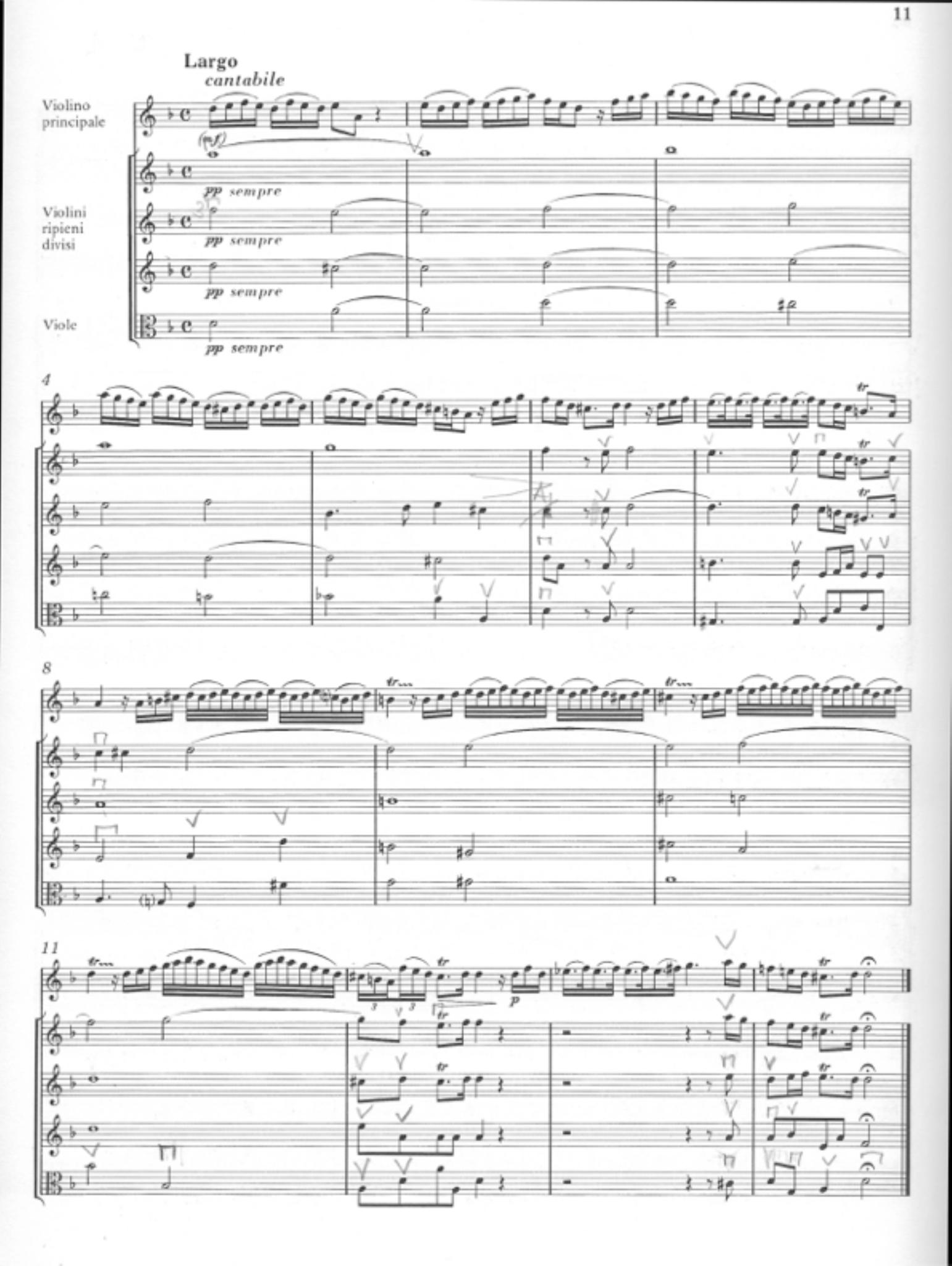 op.3 Nr.1 D-Dur für 4 Soloviolinen und Solocello